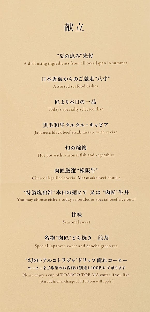 The attentive service and high-class ambiance further contribute to a memorable dining experience, making GINZA kappou ukai nikusho a must-visit for anyone seeking the pinnacle of Japanese cuisine.